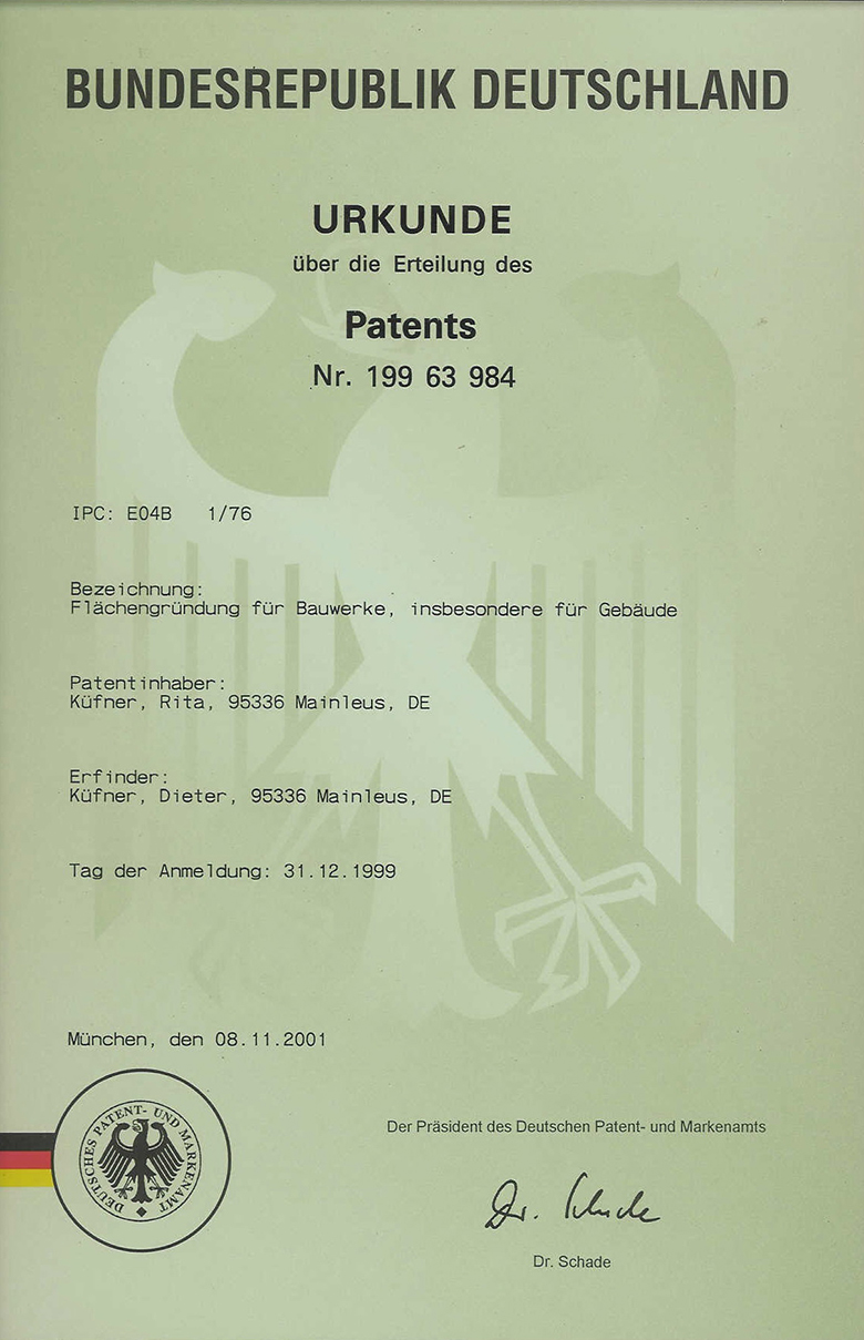 Um eine bessere Dämmung der Bauwerke in den Untergrund zu erreichen, entwickelten wir unser Wärmebodensystem. Es ist ein wichtiger Baustein unseres "3 Liter Hauses". (3 l Heizöl pro m²)